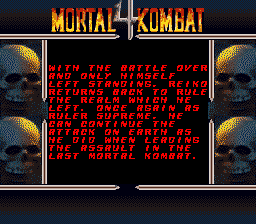 Parce qu’on ne peut pas parler de Mortal Kombat 4 sans parler de ses superbes cinématiques de fin, voici, pour finir, la plus légendaire, avec une petite référence aux brutality/fatality :