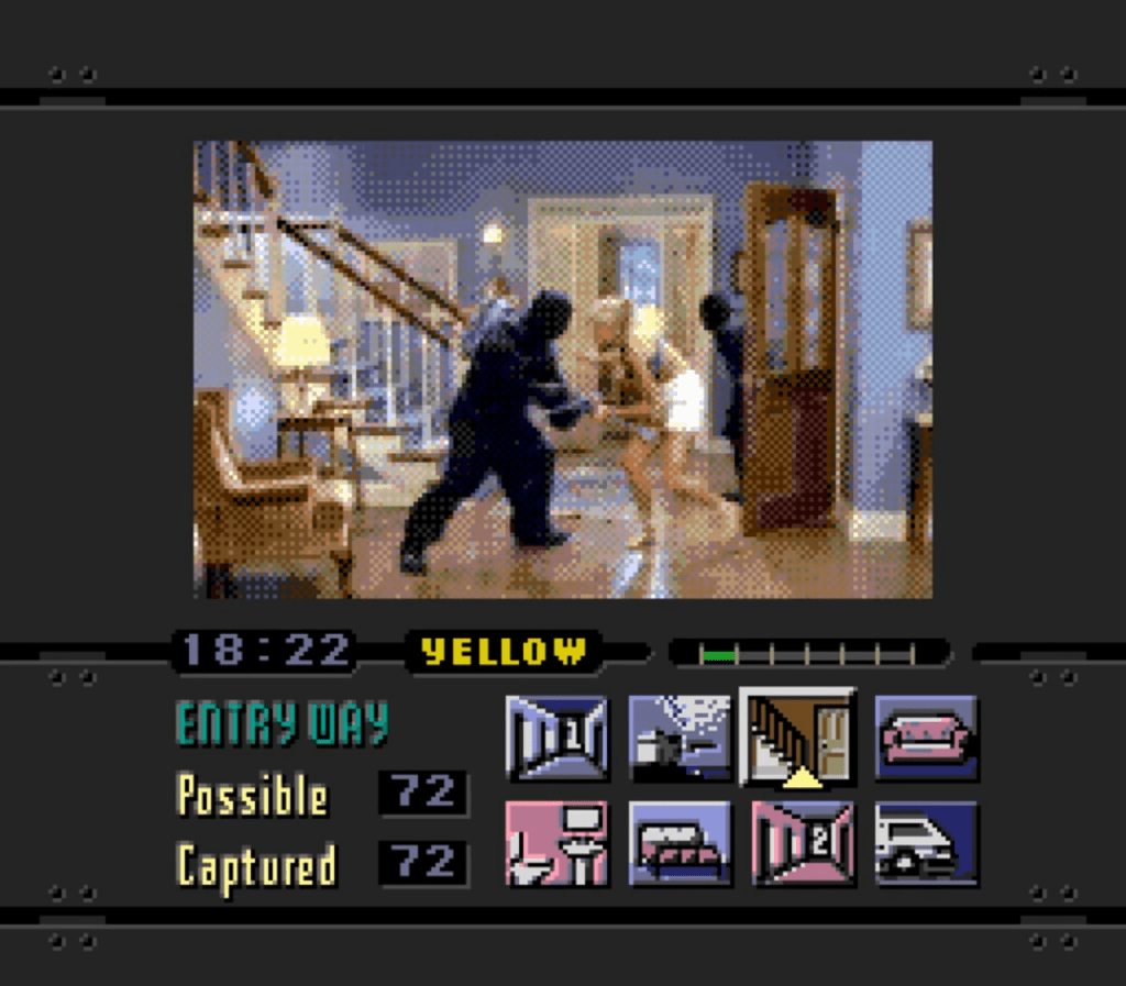 Night Trap est un des représentants les plus notoires des jeux FMV. Prenant le rôle d’un opérateur de la police (on en saura pas plus, tout le jeu se fait selon le point de vue de l’opérateur, donc nous), le joueur doit manipuler le système de sécurité d’une maison pour débusquer et piéger les ogres, de sordides créatures vêtues de noir venues aspirer le sang d’un groupe de jeunes filles occupant la maison pour la nuit. Pour ce faire, il peut switcher entre chaque pièce a volonté pour trouver les ogres, le tout se passant en temps réel, ce qui était très novateur pour l’époque. Des séquences filmées avec de véritables acteurs se déroulent en parallèle de la chasse, et il faudra tomber sur le bon événement au bon moment pour pouvoir l’arrêter ou découvrir un élément important de l’intrigue. Le créateur, Tom Zito, eu l’idée du jeu en regardant la pièce de théatre Tamara, où le spectateur doit se déplacer de lui même entre 12 salles pour suivre une histoire, sans savoir où se déroule quoi, un concept parfait pour un jeu vidéo donc.