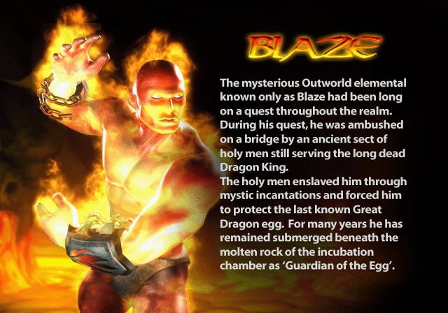 Dans Mortal Kombat : Unchained (un portage de Mystification sur PSP avec du contenu supplémentaire) la quête de Blaze est enfin révélée : affronter et juger les kombattants durant l’armageddon.