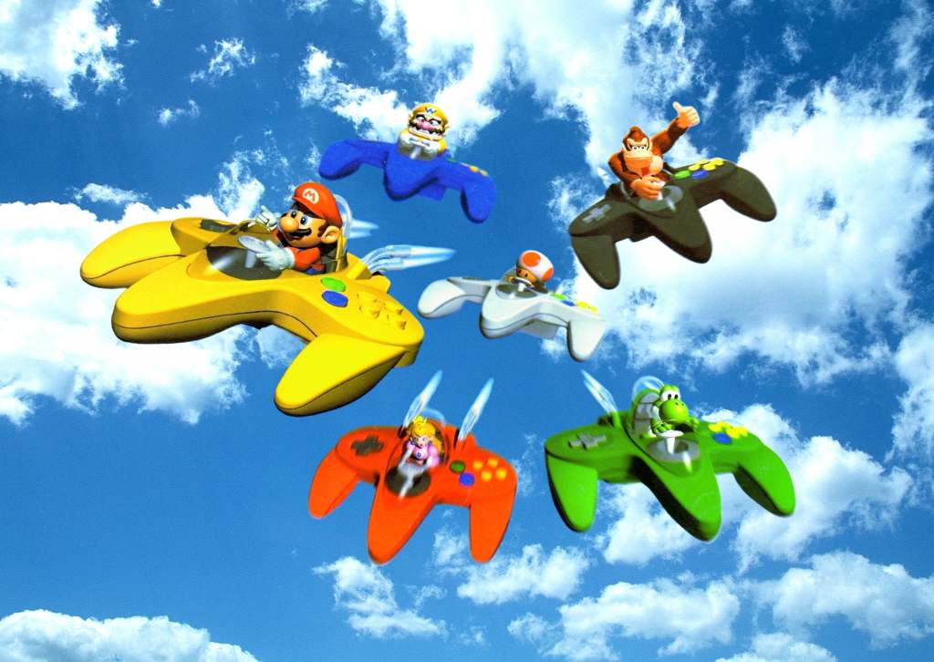 Nintendo a crée énormément d’artwork et de rendus 3D pour montrer au public l’évolution de Mario et introniser des designs définitifs qui sont pour la plupart encore utilisés : il fallait créer un visuel de référence pour caractériser le personnage pour les projets futurs. Ainsi, tous les mouvements et les transformations de Mario sur N64 ont une version « haute définition » (on pourrait même penser que les versions HD sont les visuels principaux qui ont ensuite été adaptés en jeu et pas l’inverse, par exemple à propos de Bowser qui a son design définitif et actuel en HD mais n’a rien à voir dans Mario 64). Petit florilège ici, entre Super Mario 64, Mario Kart 64, Mario Tennis, les trois premiers Mario Party et Mario Artist. On notera particulièrement l’image où le cast de Mario Kart vole sur des manettes de N64.