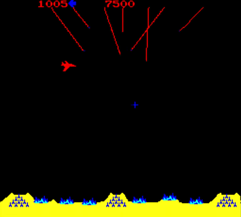 C’est ce genre de sentiment que Missile Command a voulu faire ressentir au public du début des années 80. Basé sur un cauchemar de guerre froide qui a hanté son créateur, Dave Theurer, ce titre d’arcade met en scène une situation de terreur nucléaire impossible à résoudre, seulement retarder, du fait de sa pluie de missile infinie qui ne prendra fin qu’avec une destruction totale et mutuelle. Le joueur prend donc le rôle d’un militaire chargé de détruire les menaces au dessus des villes qu’il devra protéger au mieux, jusqu’à l’inévitable moment où il sera submergé et ne pourra qu’observer la fin de la civilisation.