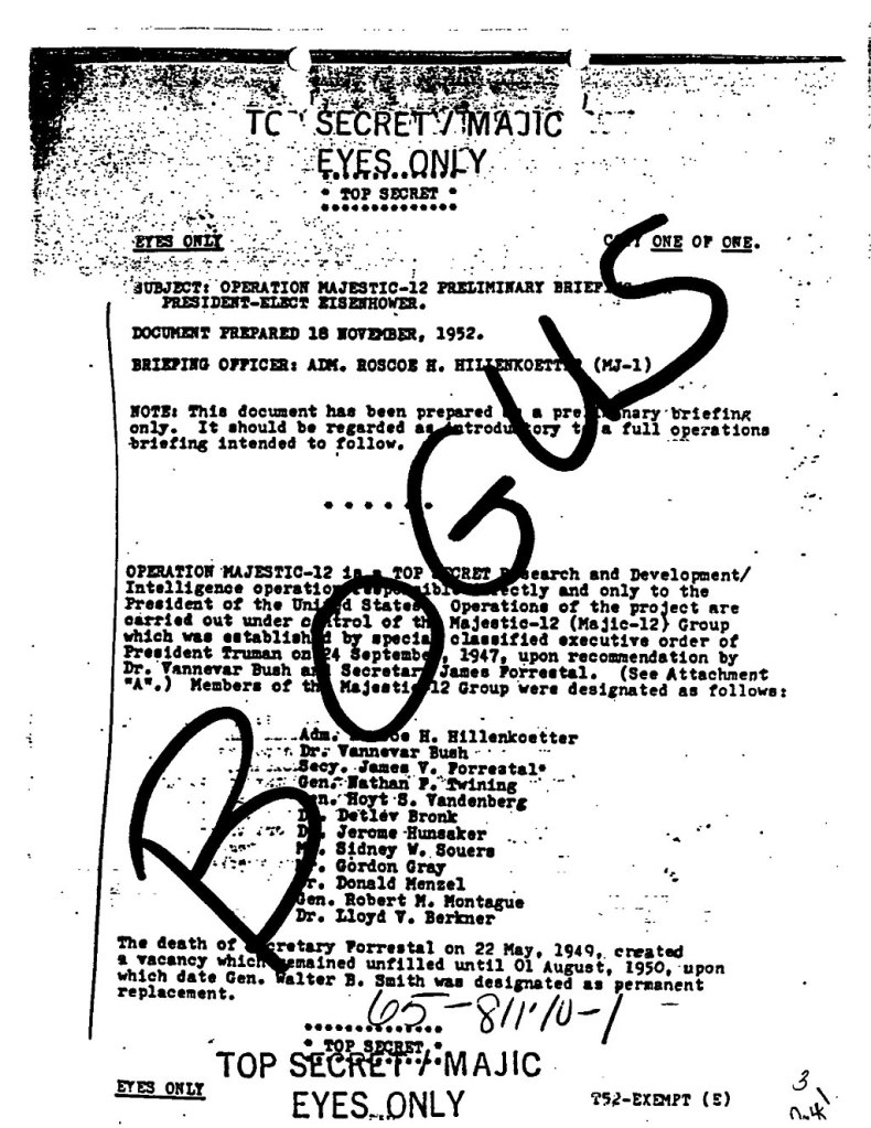 En se documentant plus en détail sur le nom « Majestic », on tombe sur « Majestic 12 « , un supposé groupe d’intellectuels formés par le président Harry S. Truman en 1947 pour enquête sur l’éventualité d’une vie extraterrestre suite a l’accident de Roswell. Son existence aurait été révélée via des documents découverts en 1988 qui confirment aupassage la présence de vie alien sur terre. Ce groupe est depuis considéré comme un hoax, même si certains, comme souvent dans ces cas là, continuent a y croire.