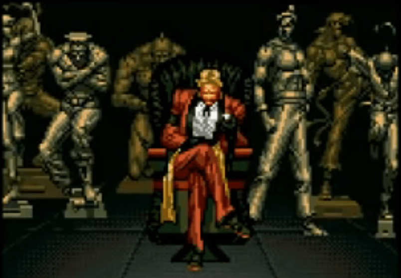 Dans son repère secret, Rugal expose les corps des combattants morts sous ses coups sous forme de statue. : on peut voir derrière lui Guile, Akuma, Zangief, Fei Long et Ryu de Street Fighter, comme un pied de nez à la série de Capcom. (il y aurait aussi supposément Reiji Oyama de Power Instint dans les victimes). Le « King of Fighters », celui qui remportera le tournoi éponyme en vainquant Rugal, aura donc surpassé celui ayant tué les personnages de Street Fighter II ; Kyo, le futur gagnant, est donc subtilement intronisé comme combattant ultime de l’univers des jeux de combat.