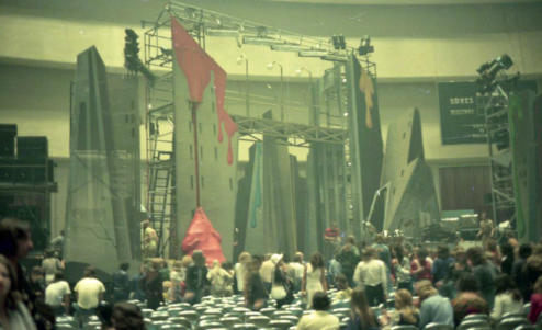 Dans celui ci, des temples sont à la gloire de Bowie, comme ces quatre écrans diffusant des dessins représentant l’artiste.