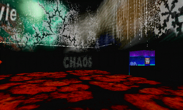 Je passe les galeries de photos retraçant la carrière de l’artiste par année (beaucoup d’entre elles semblent avoir disparues avec le temps) pour arriver à la salle du chaos, où un enchevêtrement d’animations en tout genre se jouent dans un capharnaüm visuel.