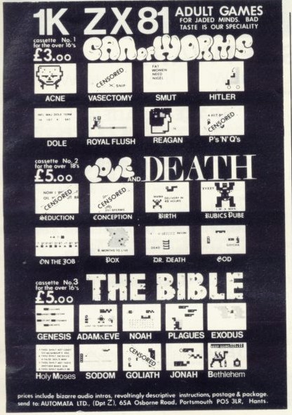 Mel Croucher, né en 1948 en Angleterre, s’initie a la programmation via les « machines musicales » où il fallait insérer des cartes trouées pour jouer des mélodies. Oubliant vite cette passion de jeunesse, il devient architecte plus par nécessité que par passion, et est (selon lui) l’auteur de la première carte topographique de Dubaï, accompagnée d’un guide audio sur cassette, qu’il confectionne après avoir été embauché par le Cheik pour y construire leurs premiers buildings. A l’abri du besoin grâce à son business florissant, il retourne dans son pays natal et se remet a sa première passion, la musique, en proposant des programmes sur une radio locale où certaines fréquences pouvaient être captées par des ordinateurs pour créer des mini jeux de quizz (j’avoue que je ne comprends pas trop comment ça marche). il fonde son propre studio en 1977, Automata UK, d’abord destiné a l’édition de guides touristiques mais vite détourné en 1981 pour éditer des productions vidéoludiques (initialement pour recycler un stock de cassettes invendues).