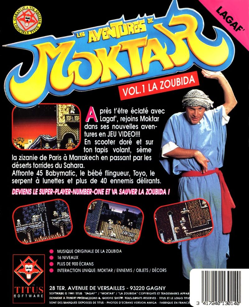 A noter que le titre complet du jeu est Les Aventures de Moktar – Volume 1 : La Zoubida, Titus ayant peut-être prévu de sortir un « Volume 2 : Le Lavabo »? En tout cas, il n’y à jamais eu de suites.