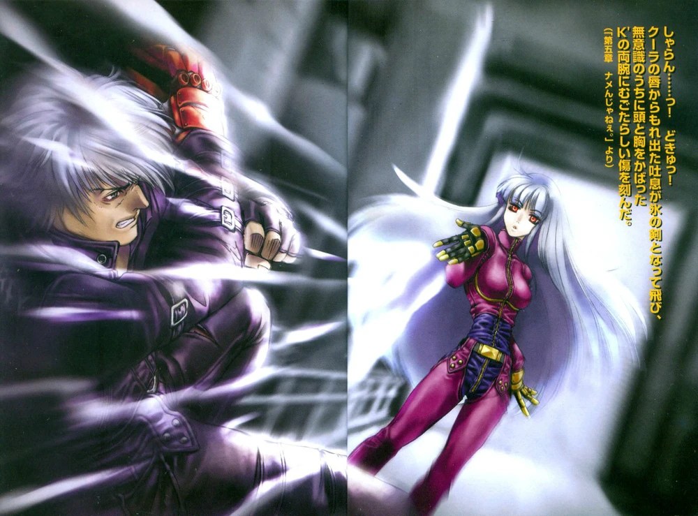 Après les événements de KOF 99, K’ et Maxima sont devenus des terroristes, décidés à démanteler l’organisation NEST. Un nouveau tournoi est organisé par Heidern de la Team Ikari et un de ses collègues, Ling, qui engage deux agents, dont l’une, Vanessa, retrouve nos deux héros sous couverture pour leur donner leur invitation. Pendant ce temps, la mystérieuse Kula entre illégalement dans le tournoi…