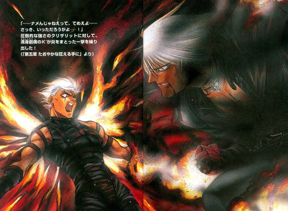 Une fois vaincu, Krizalid est abandonné par ses supérieurs pour avoir failli sa mission et son armée de clones désactivée. Kyo fait soudainement face à nos héros, s’étant enfui d’un laboratoire où il était gardé prisonnier, mais, sans un mot, disparait dans le complexe. Le bâtiment s’autodétruit, et K’ et Maxima sont séparés de leurs compagnons dans la destruction, Iori est montré comme ayant également survécu, maintenant a la recherche de Kyo. La team Ikari, arrivée après la bataille, récupère le corps de Krizalid : avant qu’il pousse son dernier souffle, broyé sous des décombres, Whip viens écouter les dernières paroles de celui qui pensait être son frère ; elle l’informe qu’il était en réalité le clone, et que K’ est l’original, donc son véritable frère. Une larme coulant sur sa joue, elle l’observe mourir.